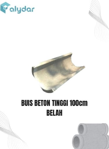 Buis Beton Belah: Merupakan buis beton bulat yang dibelah secara memanjang, biasanya digunakan untuk saluran terbuka atau saluran permukaan.